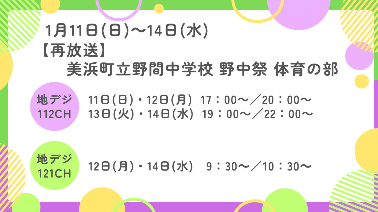 【再放送】美浜町立野間中学校 体育祭
